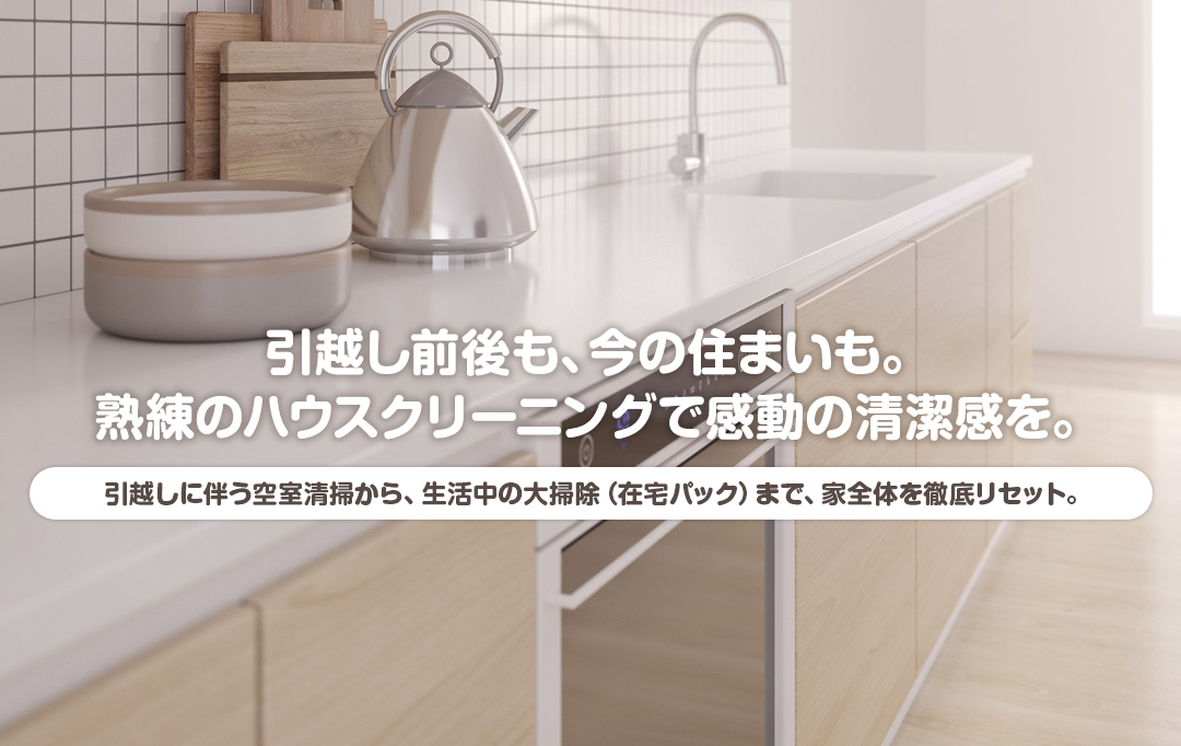 「引越しに伴う空室清掃から、生活中の大掃除(在宅パック)まで、家全体を徹底リセット。」