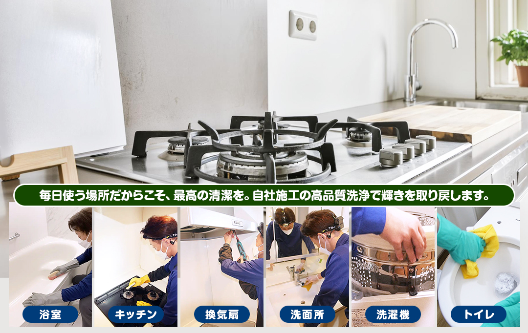 毎日使う場所だからこそ、最高の清潔を。自社施工の高品質洗浄で輝きを取り戻します。