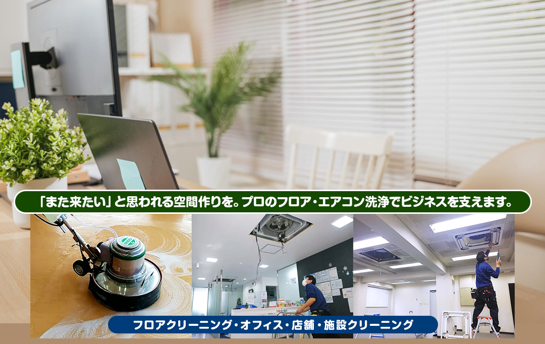 「また来たい」と思われる空間作りを。プロのフロア・エアコン洗浄でビジネスを支えます。