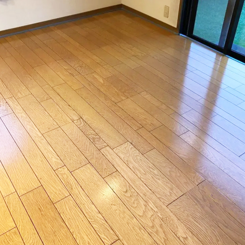 フローリングクリーニング黒ずみを落としてワックスを再塗布。新築時のような光沢と保護を実現