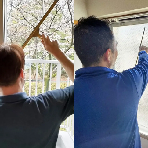 Myハウスクリーニングの窓ガラスクリーニングは 業務用の洗剤を使って 窓ガラス・サッシをピカピカに磨きあげ、透き通る美しい窓ガラスを実現します。